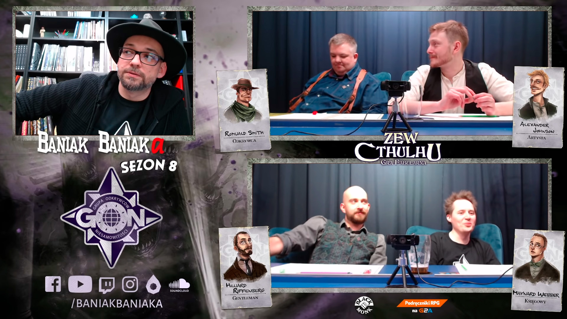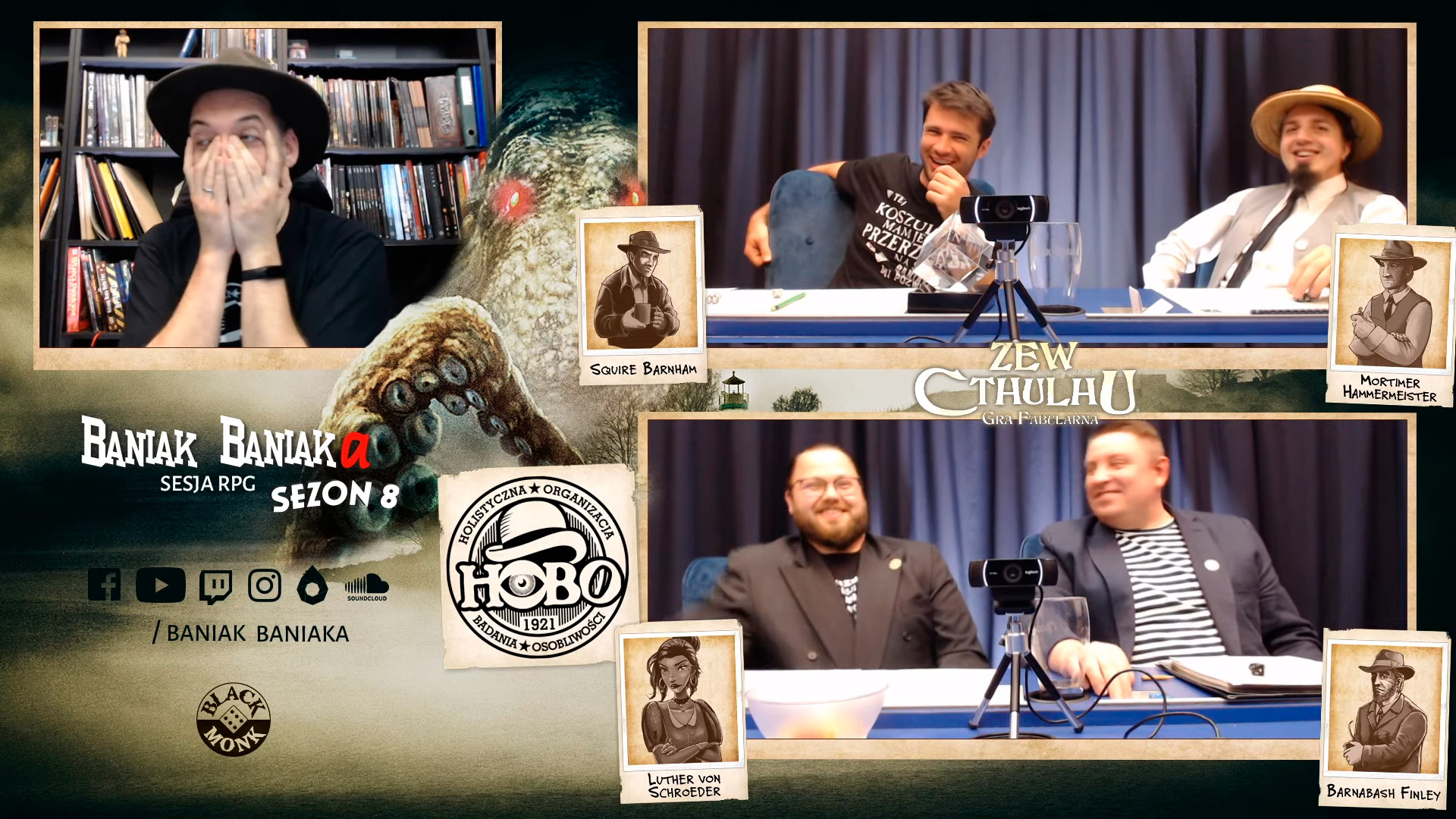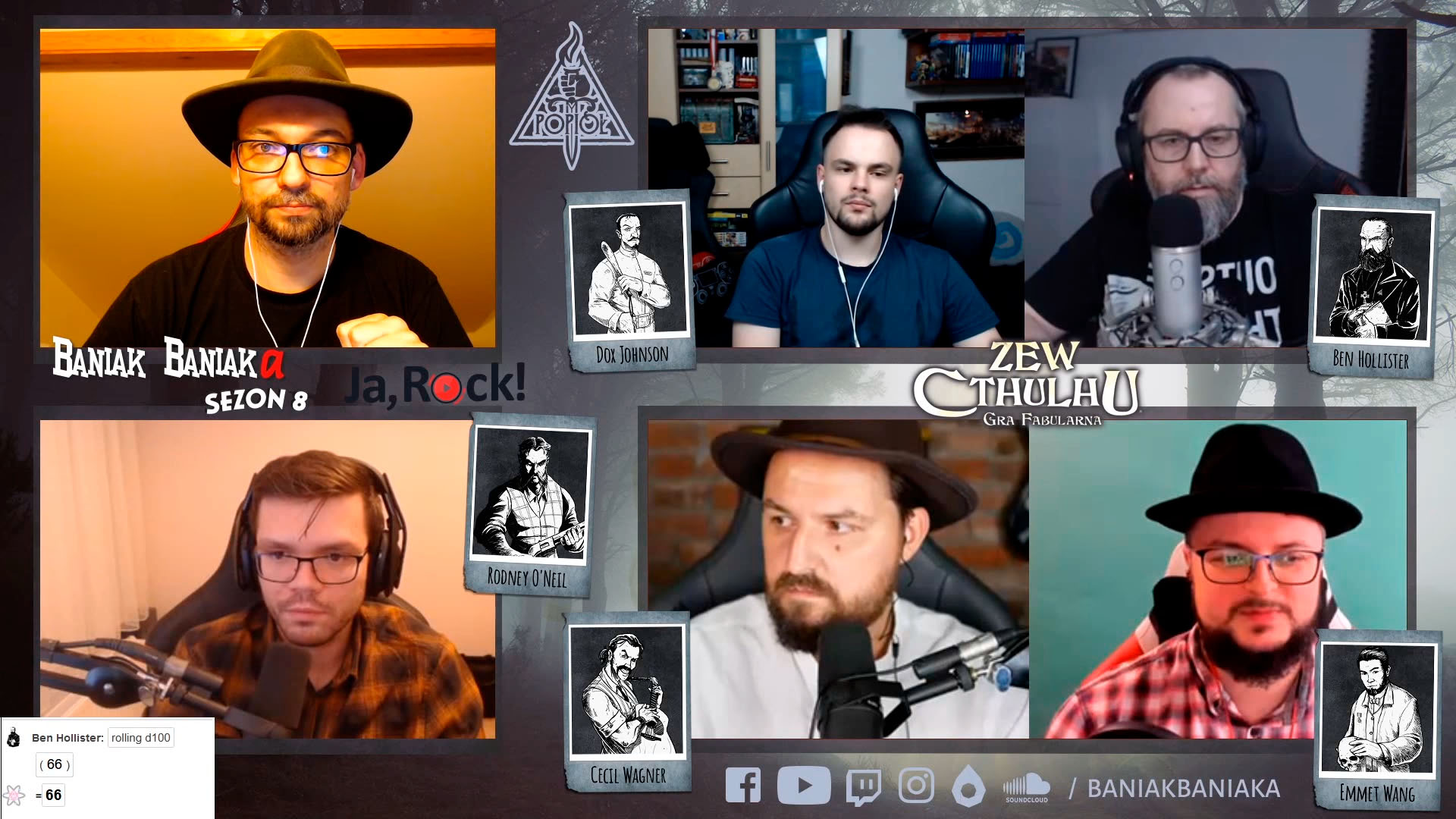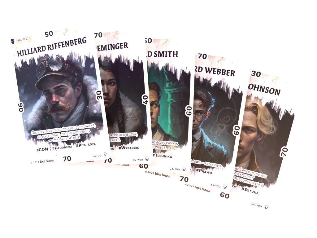 Rada Pięciu to gra, która jest mocno osadzona w Baniak Cthulhu Universe. Ten świat został stworzony przez Mistrza Gry, Michała Bańkę, na bazie dorobku H.P. Lovecrafta. Całość rozgrywana była w formie sesji RPG na kanale Baniak Baniaka. Co można powiedzieć o BCU? To 122 sesje, podczas których 60 Graczy tworzyło pełnokrwiste i wyraziste postaci. Bohaterowie w 5 głównych zespołach walczyli nie tylko z plugastwem z innych rzeczywistości, ale także z własnymi słabościami, a niekiedy nawet ze sobą nawzajem. Przygody w tym uniwersum są pełne ekscytujących starć, zwrotów akcji, wzruszeń i rozpaczy. To wszystko jest okraszone wspaniałymi smaczkami rodem z USA, z lat 20. XX wieku, kiedy to toczy się owa historia. Poznaj HOBO, KŁM, GON, POPIÓŁ i SUM, czyli organizacje stworzone po to, by stawić czoła ponadnaturalnym zagrożeniom. Na kartach tej gry znajdziesz ich członków, przyjaciół oraz wrogów.