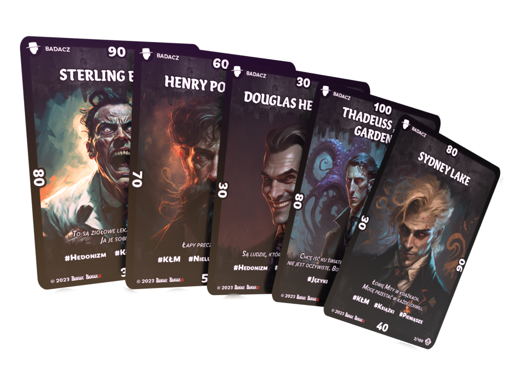 Jesteś fanem kanału Baniak Baniaka? A może lubisz dreszczyk grozy charakterystyczny dla twórczości H.P. Lovecrafta? Jeżeli choć na jedno z tych pytań odpowiedziałeś twierdząco i masz przynajmniej 15 lat – ta gra jest dla Ciebie. Za sprawą tej mrocznej propozycji będziesz mógł stanąć w szranki ze swoim przeciwnikiem, próbując przeciągnąć go na swoją stronę szaleństwa. Ta gra karciana przeznaczona jest dla dwóch osób. Jest idealna nie tylko na wspólne wieczory z drugą połówką, ale także na spotkania z przyjaciółmi, czy przełamanie pierwszych lodów z nieznajomymi. Dużym atutem tego produktu jest szybka rozgrywka. Przeciętnie trwa od 10 do 30 minut. Możesz więc sięgnąć po tę karciankę, zarówno w przypadku, gdy Twój czas jest mocno ograniczony, jak i wtedy, gdy masz ochotę na turniej.